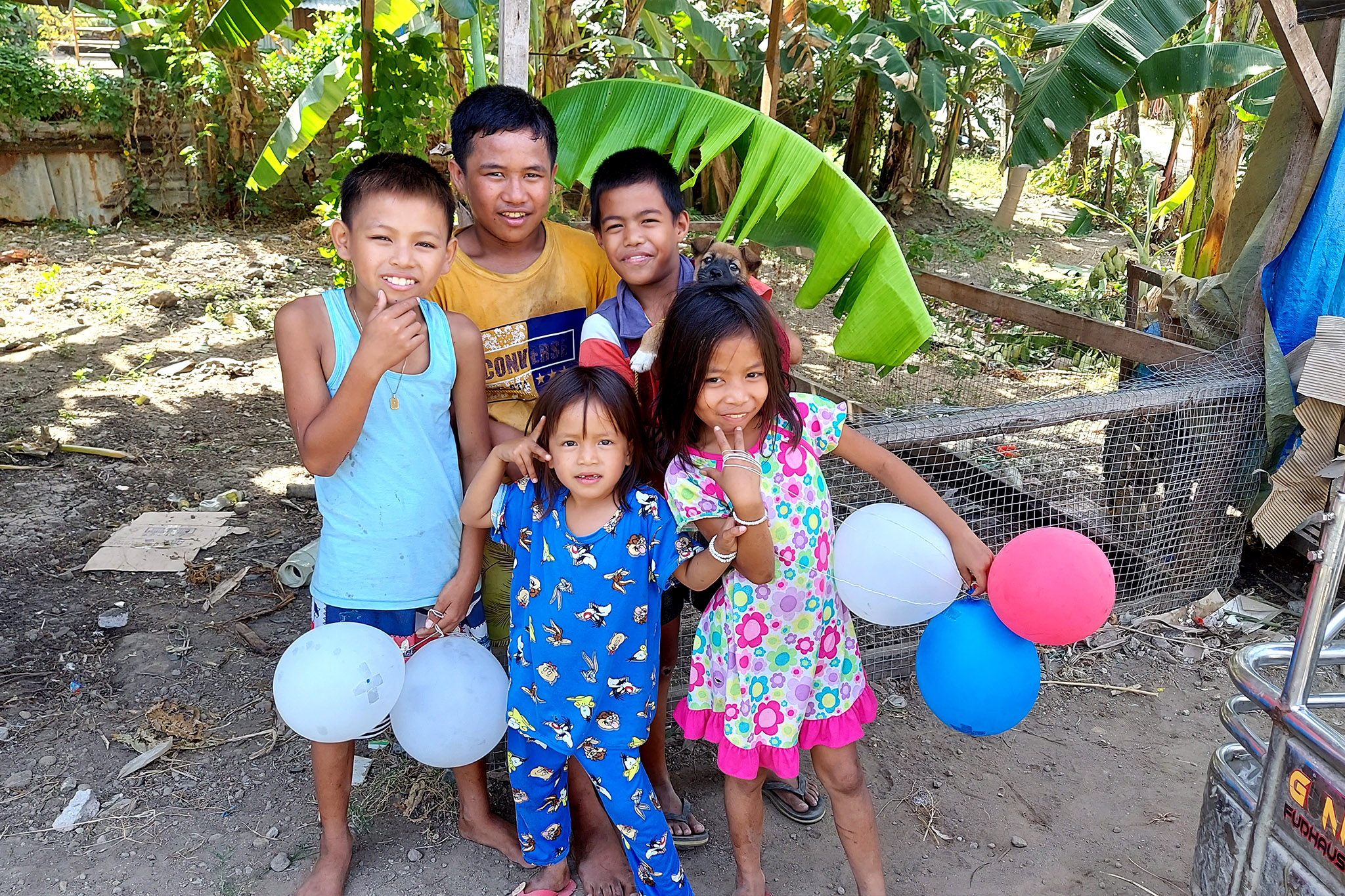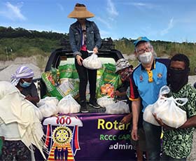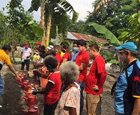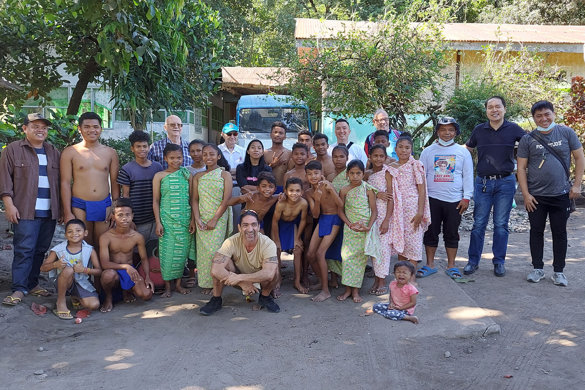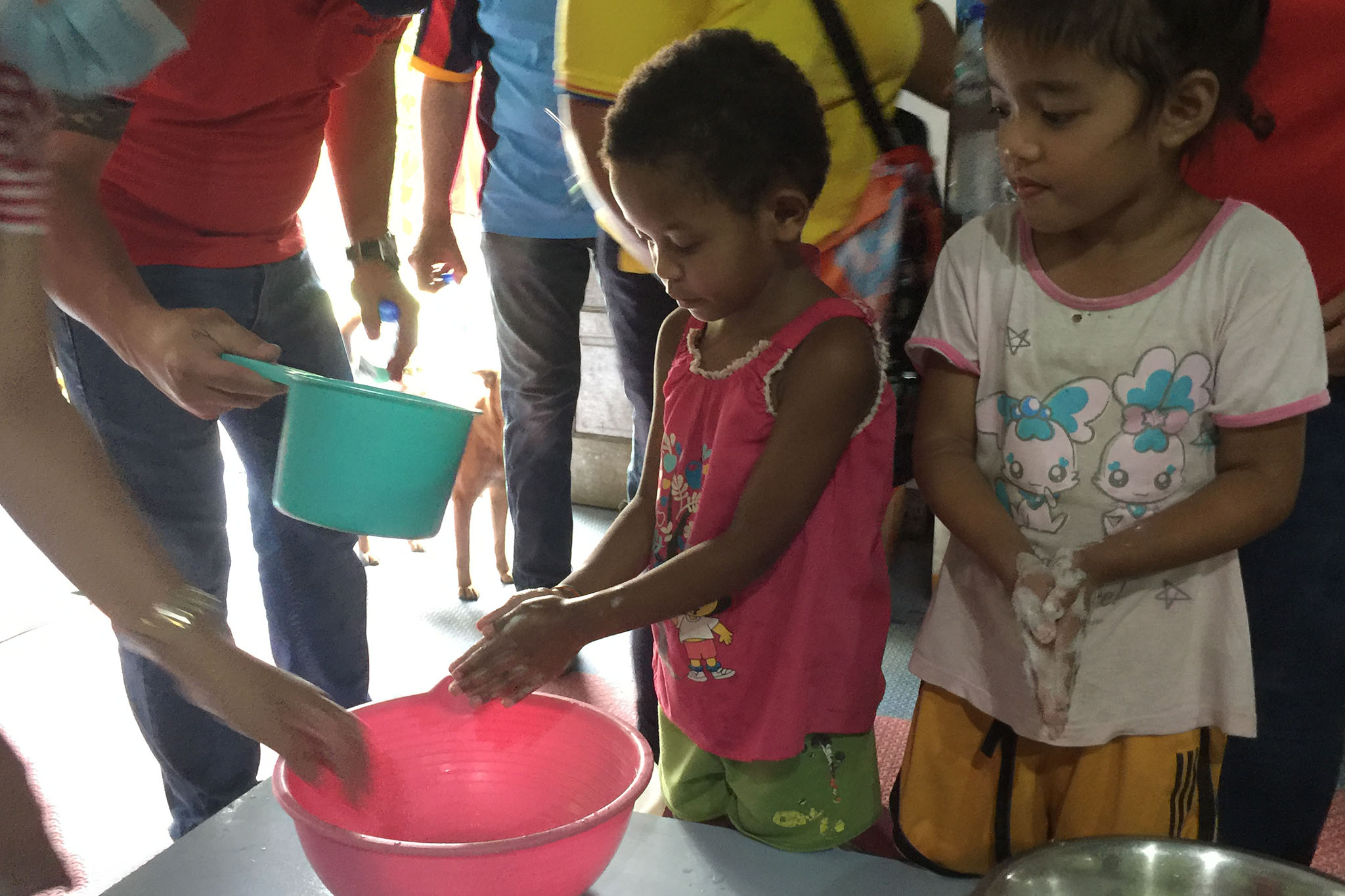 The indigenous Aeta people who live in the mountains receiving sacks of rice and salt.