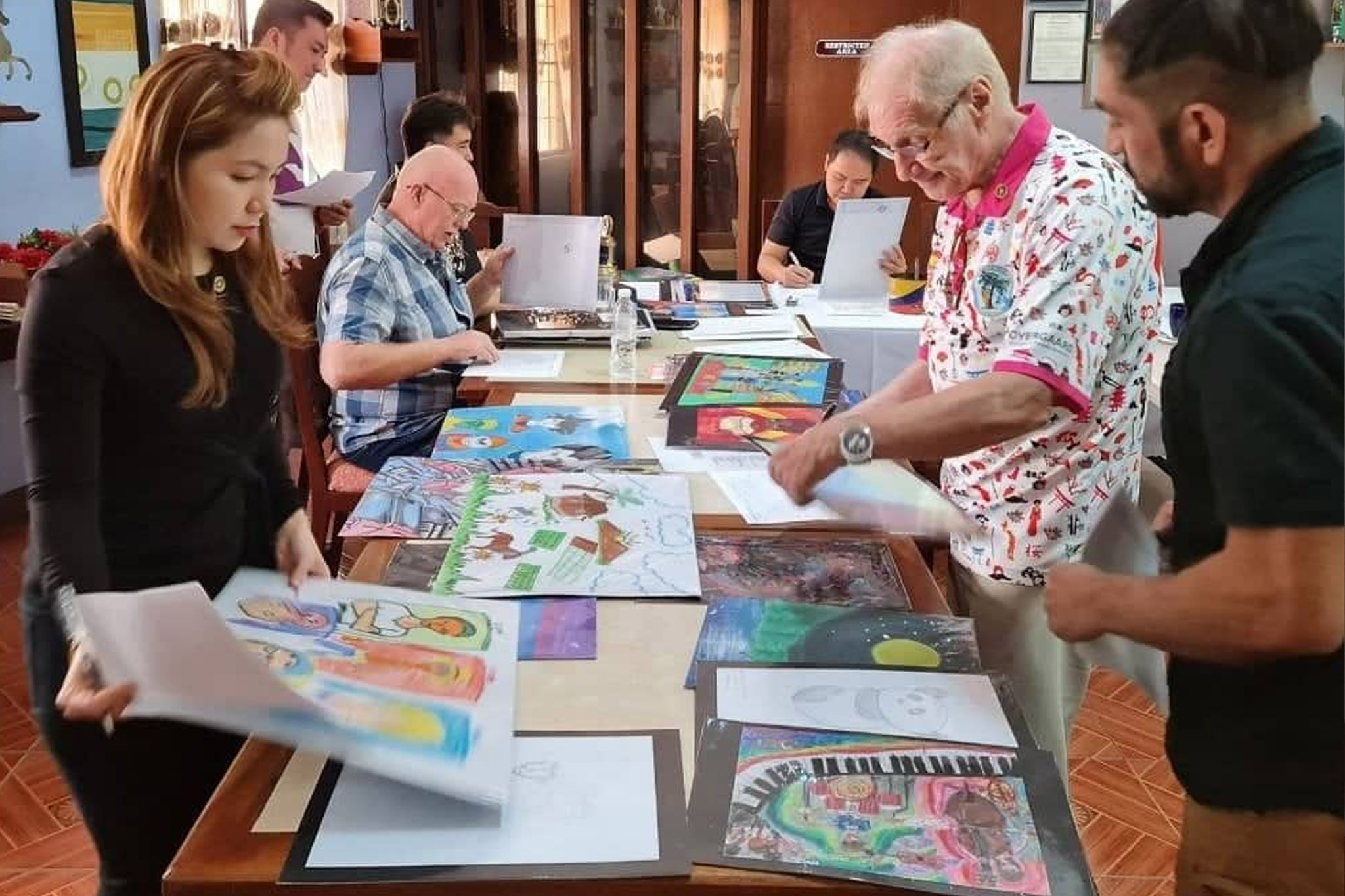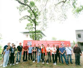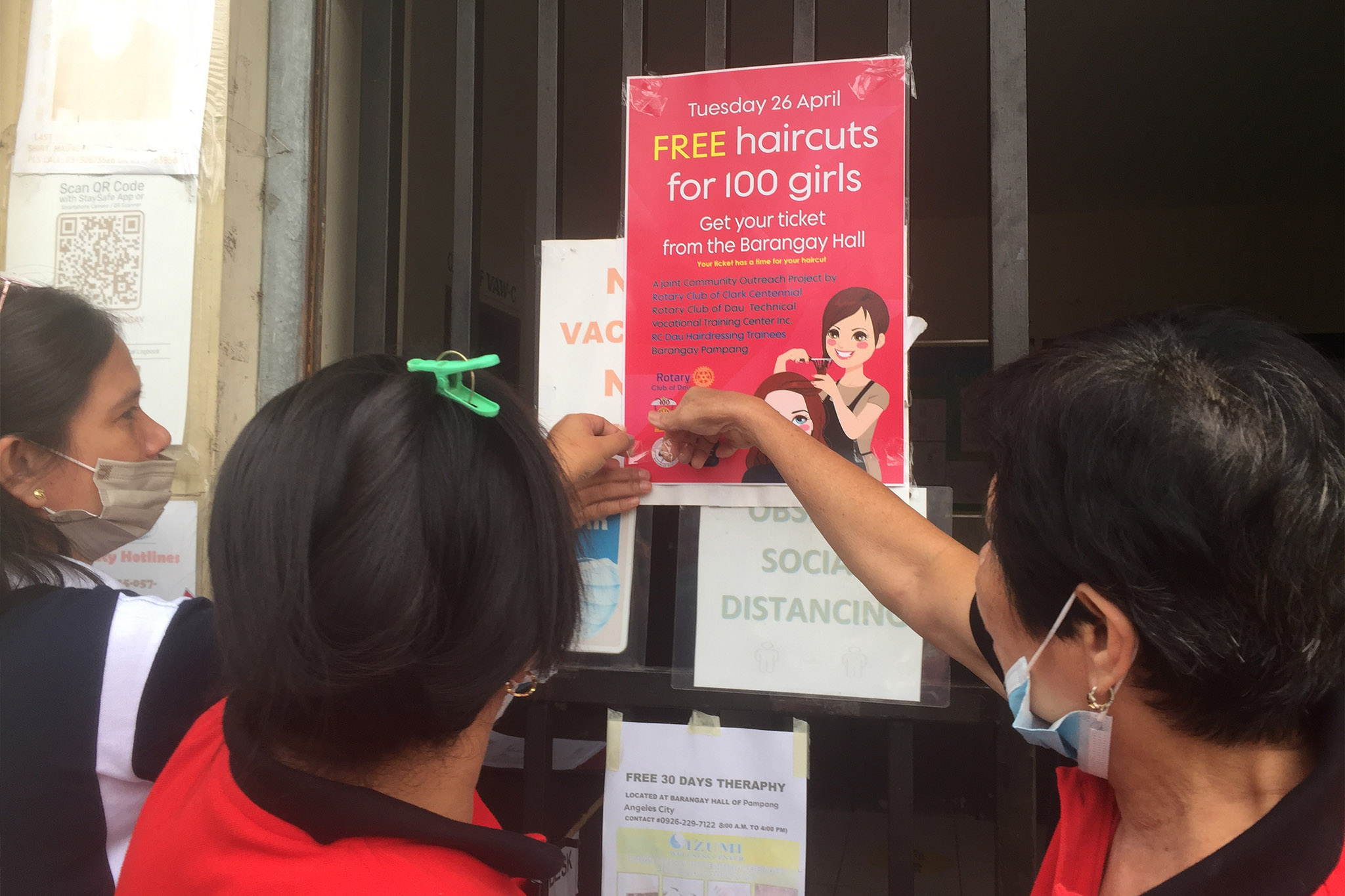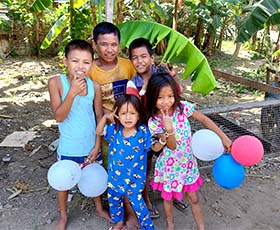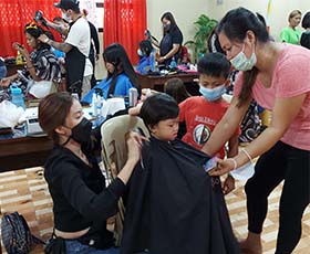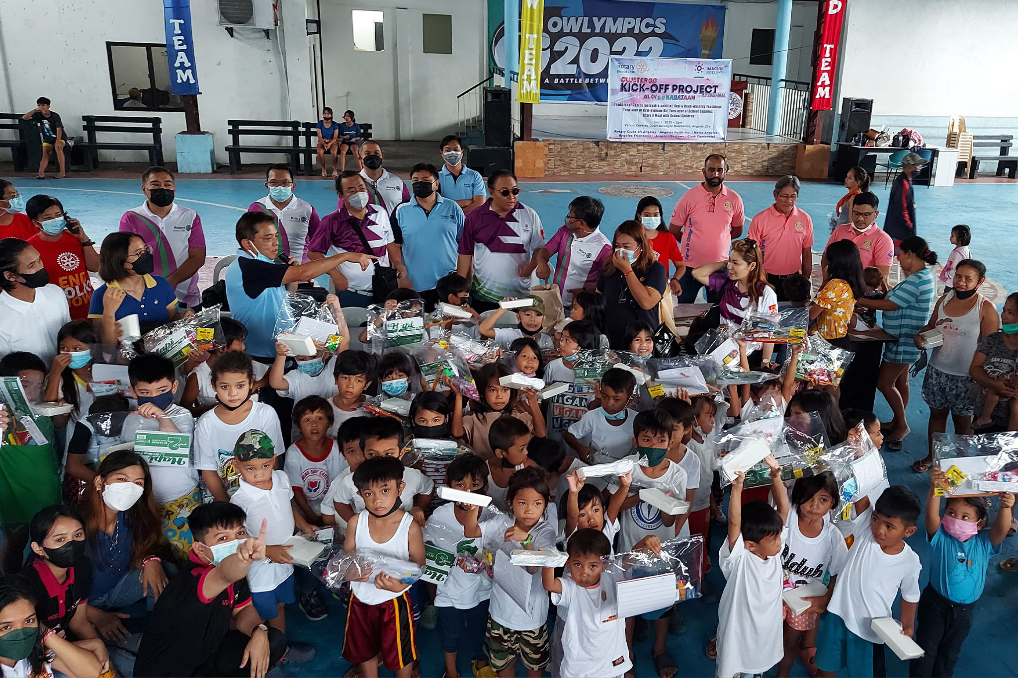 The indigenous Aeta people who live in the mountains receiving sacks of rice and salt.