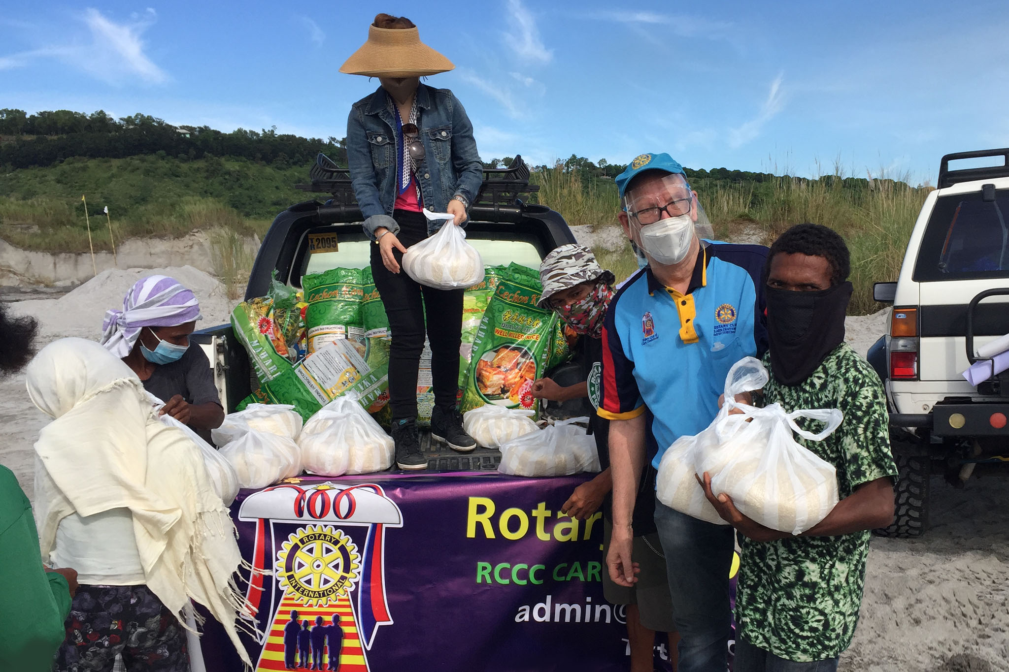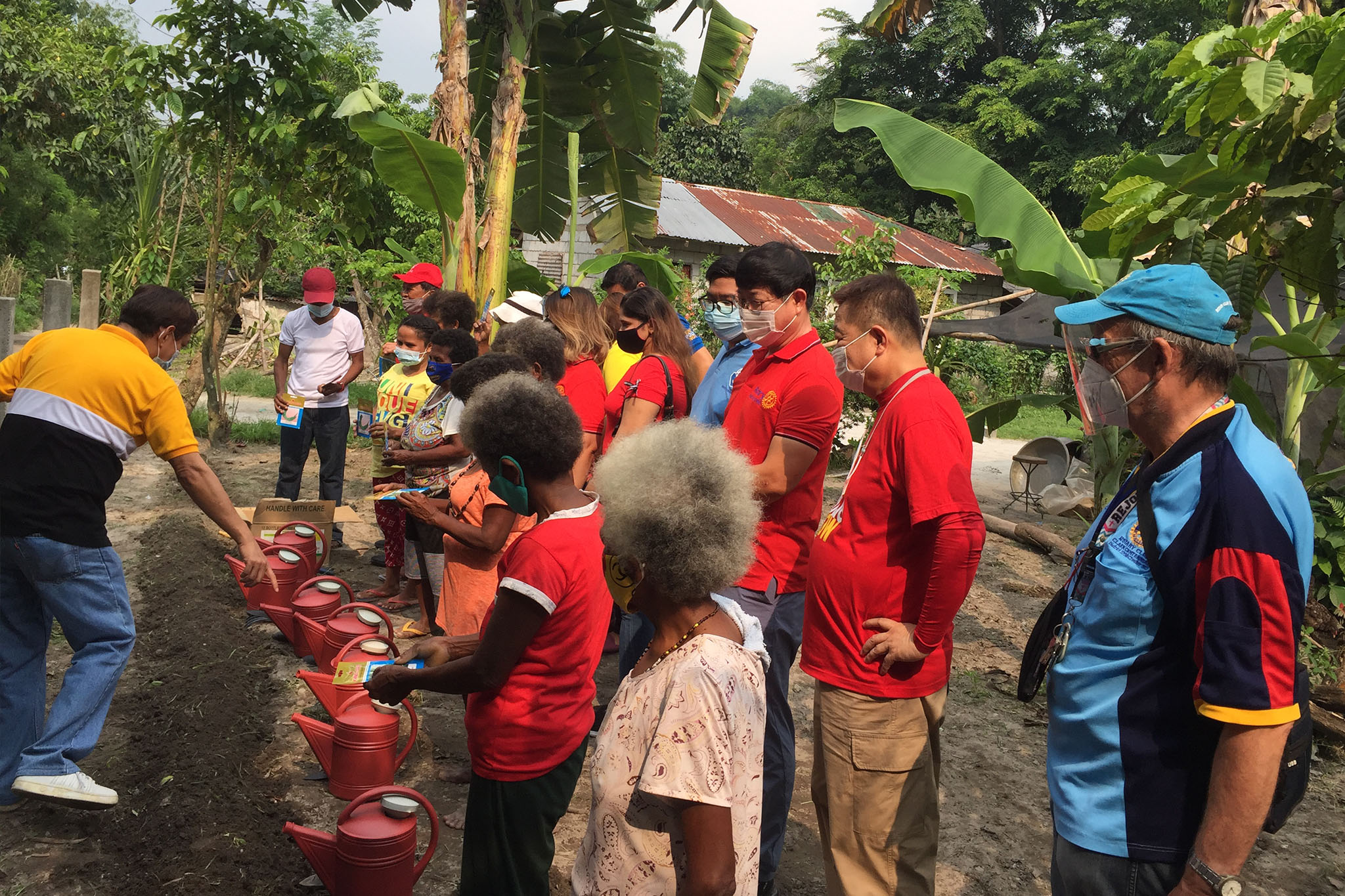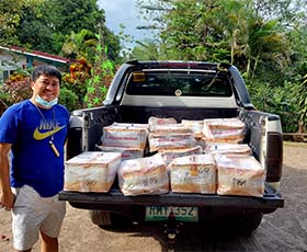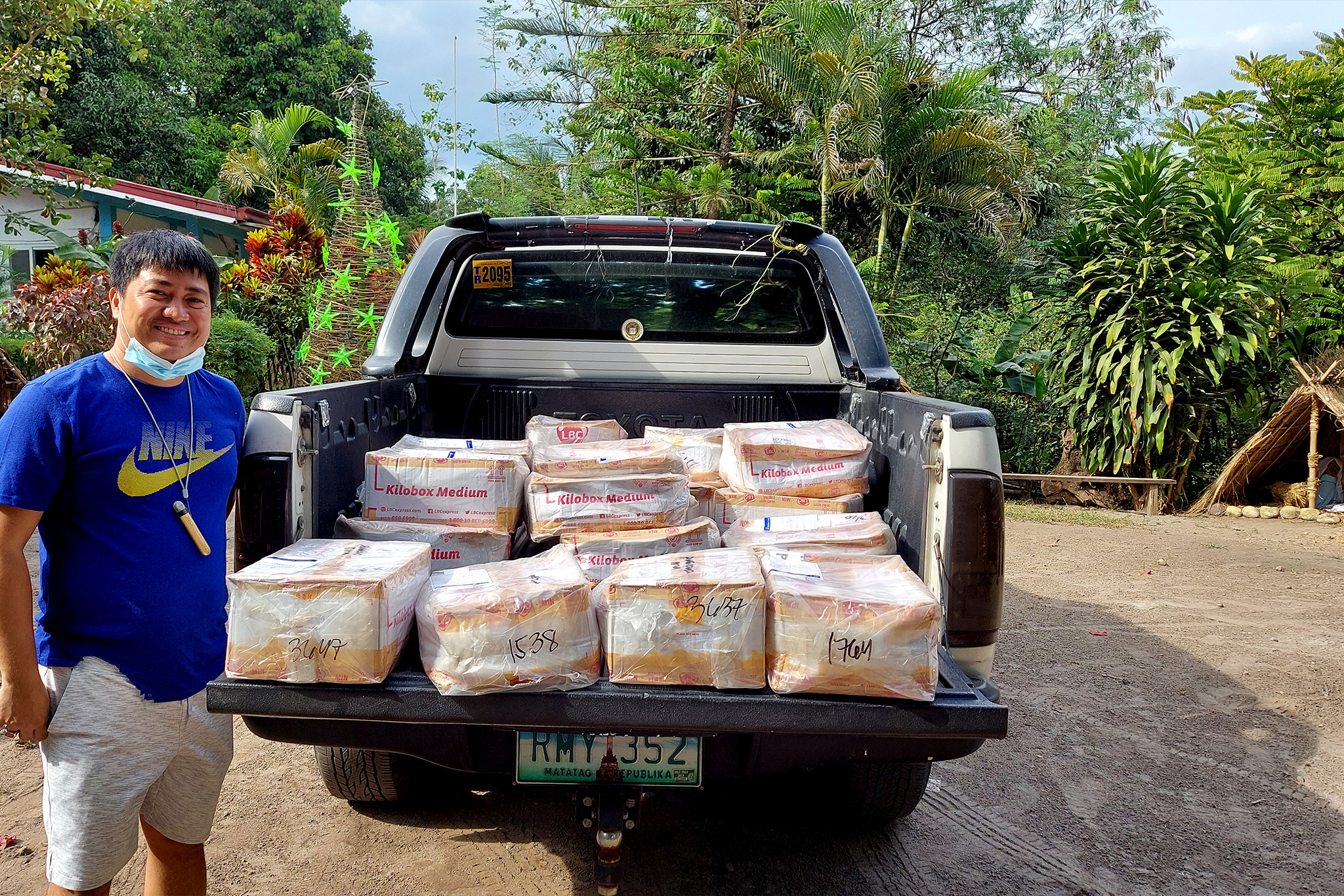 The indigenous Aeta people who live in the mountains receiving sacks of rice and salt.