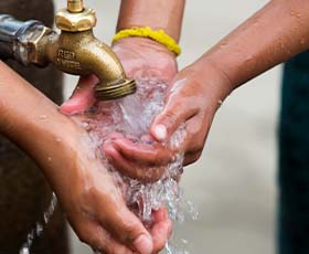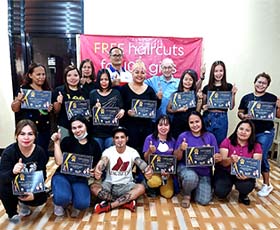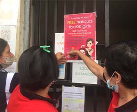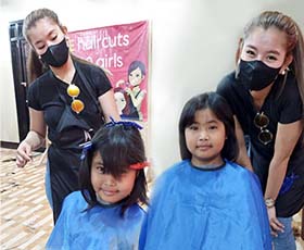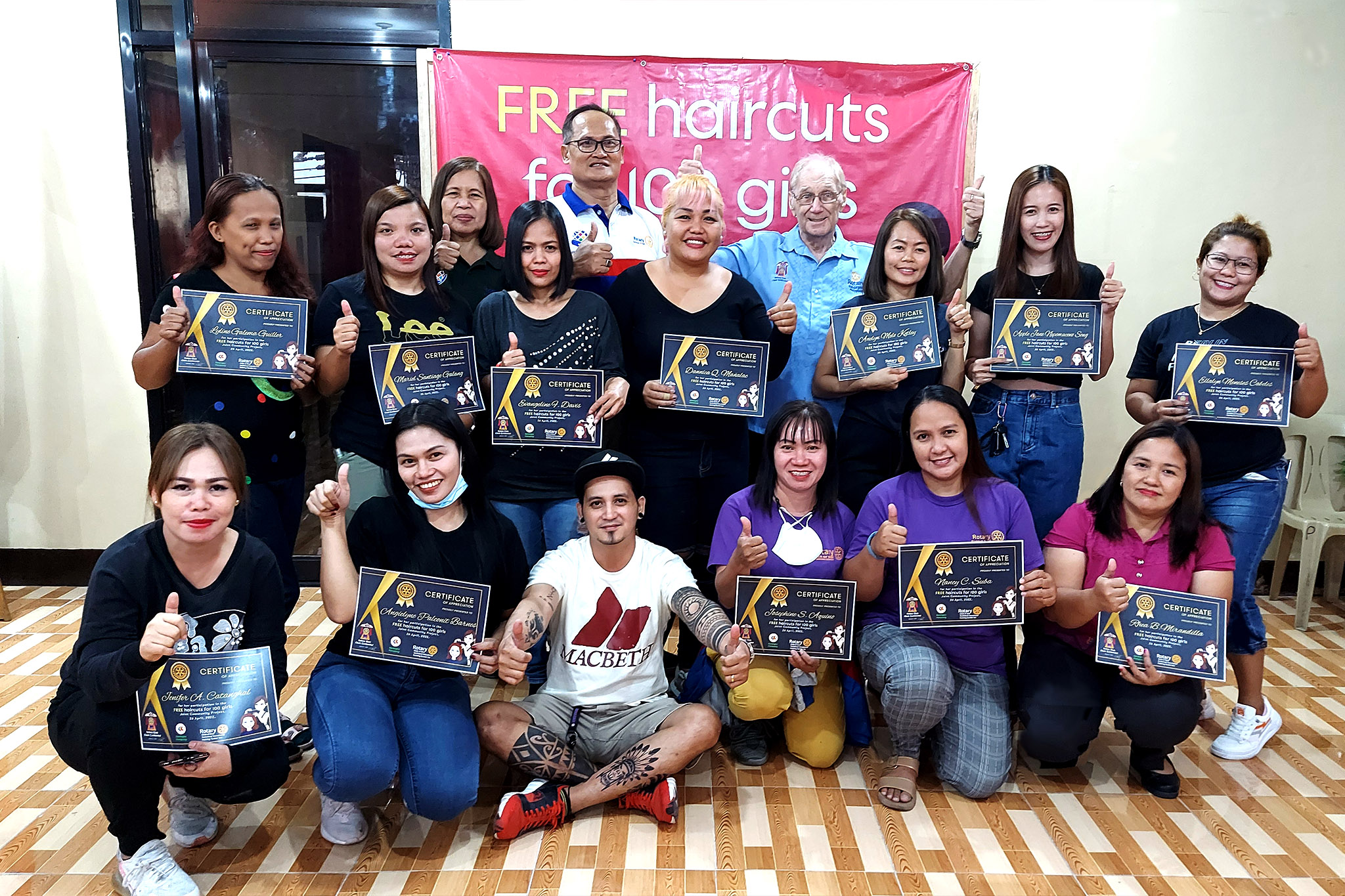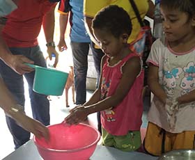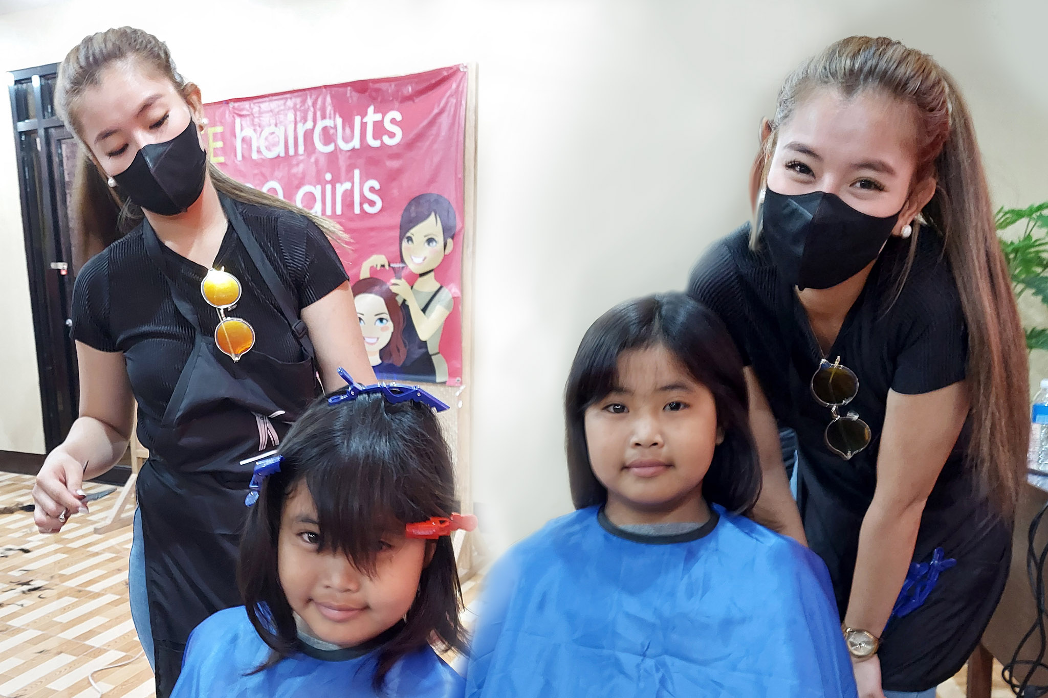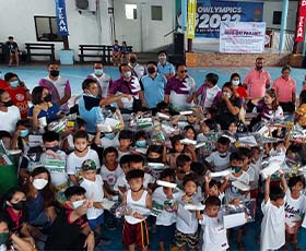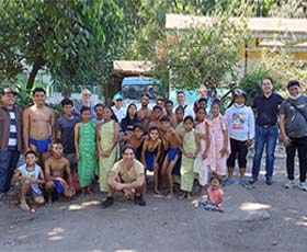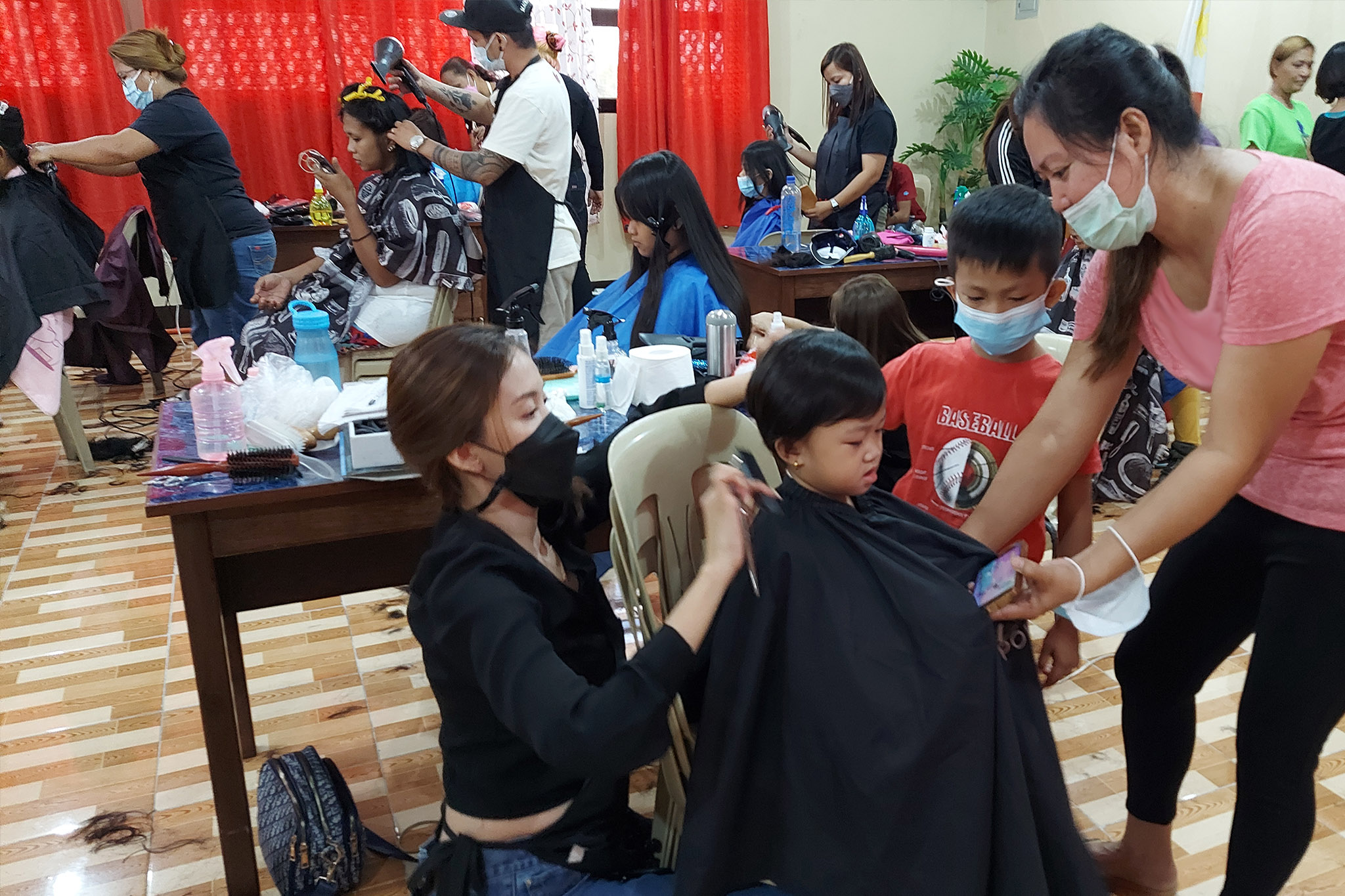 The indigenous Aeta people who live in the mountains receiving sacks of rice and salt.
